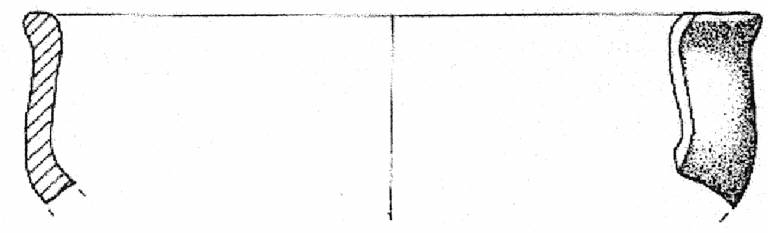 Orlo arrotondato, esoverso, corpo carenato con vasca bassa e parete rettilinea a profilo verticale. Superficie di colore grigio molto scuro (5 Y 3/1).