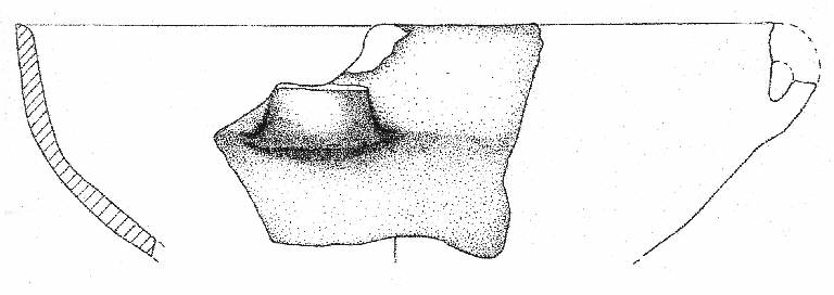 Orlo assottigliato, corpo a calotta. Si conservano agli attacchi dell'ansa impostati sull'orlo e sul diametro massimo. Superficie di colore grigio (10 YR 5/1).
