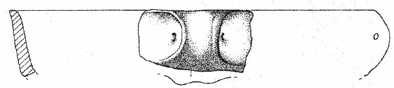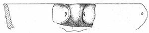 Orlo piatto, corpo carenato con parete rettilinea, debolmente esoversa, ansa canaliculata con i bordi ingrossati impostata sull'orlo che sulla carena. Superficie di colore grigio molto scuro (5 Y 3/1).