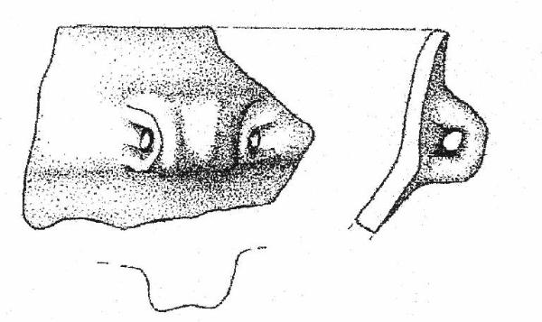 Orlo arrotondato, parete esoversa, ansa con perforazione orizzontale impostata 1,5 cm sotto l'orlo. Superficie di colore grigio molto scuro (5 Y 3/1).