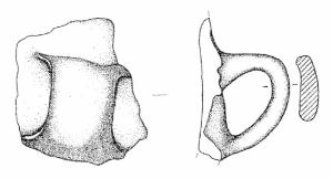 Ansa a nastro verticale, non sopraelevata, ad orecchio. Superficie di colore grigio chiaro (2,5 Y 7/2).