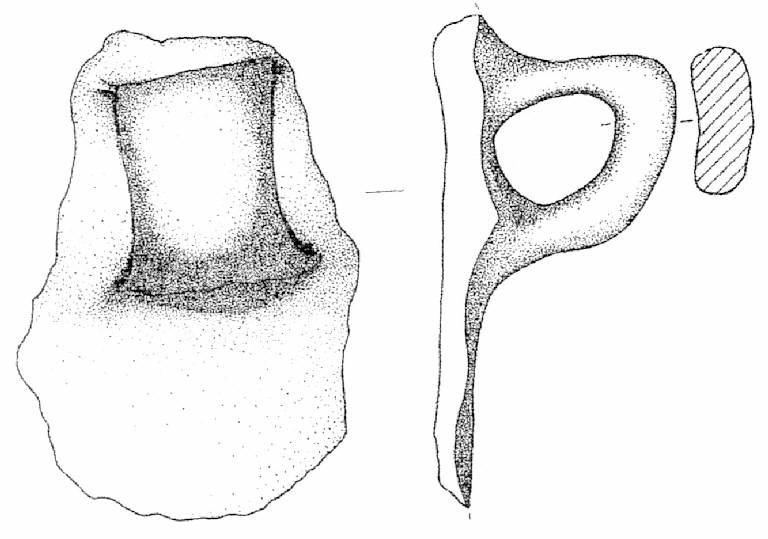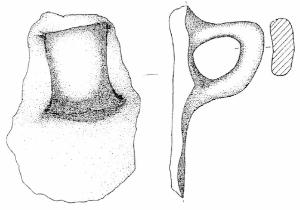 Ansa a nastro verticale, non sopraelevata, ad orecchio. Superficie di colore grigio (10 YR 6/1).