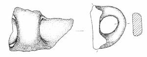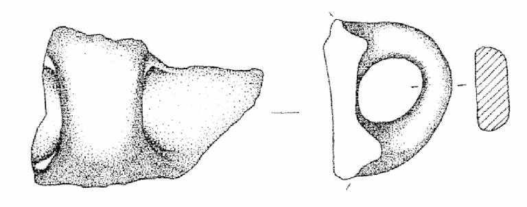 Ansa a nastro verticale, non sopraelevata, ad anello. Superficie di colore grigio rosa (5 YR 7/2).