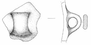 Ansa a nastro verticale, non sopraelevata, ad anello. Superficie di colore grigio scuro (2,5 Y 4/0).