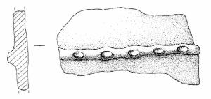 Decorata da un cordone tacche, orizzontale. Superficie di colore giallo pallido (2,5 Y 8/3).