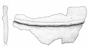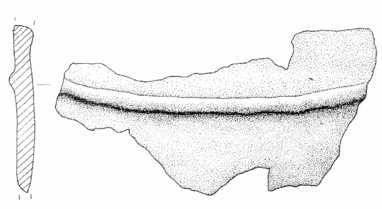 Rettilinea, ornata da un cordone liscio, orizzontale. Superficie di colore bruno grigio molto scuro (10 YR 3/2).