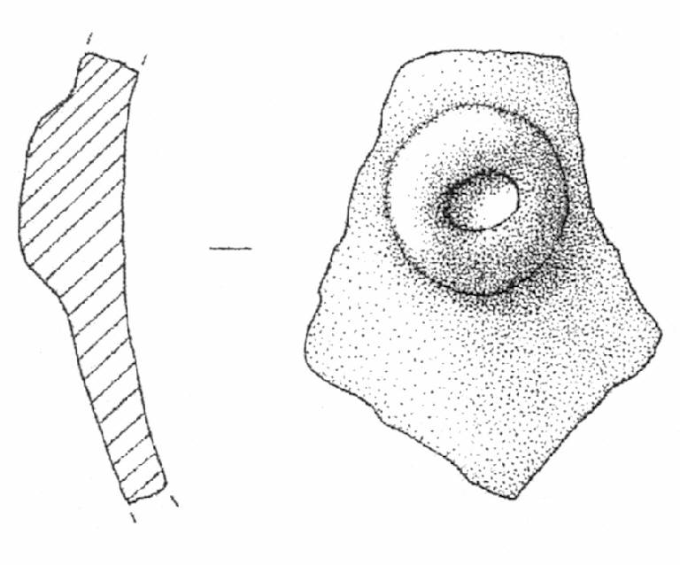 Convessa, con applicata una pastiglia circolare. Superficie di colore grigio (10 YR 6/1).