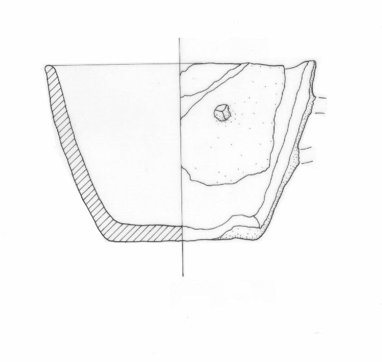 Profilo tronco-conico decorato con serie di piccole bugne sotto l'orlo.