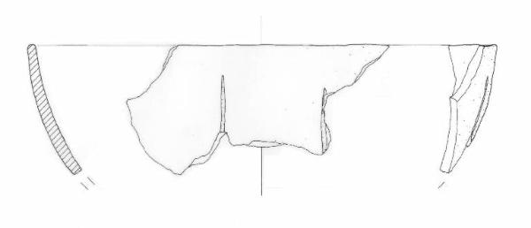 Profilo emisferico decorato con solcature parallele e verticali all'orlo.