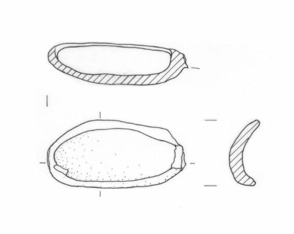 Mestolino fittile a profilo ovoide.