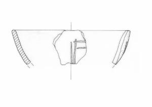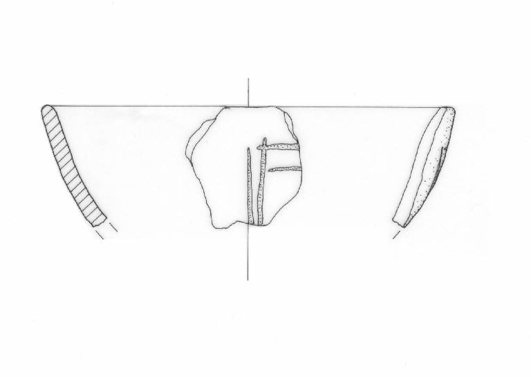 Profilo emisferico decorato a linee incise parallele e verticali all'orlo.
