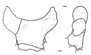 Frammento di ansa a nastro verticale, a corna tronche, con margine superiore marcatamente concavo. Colore grigio