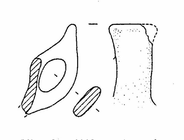 Frammento di orlo e parete di capeduncola, con ansa a nastro verticale, soprelevata, ad ascia, con margine superiore rettilineo.