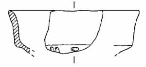 Scodella a profilo articolato, con orlo arrotondato, corpo carenato, a parete leggermente concava, con diametro all'orlo maggiore del diametro alla carena, vasca troncoconica. Sotto la carena vi sono due solcature ed una coppella.