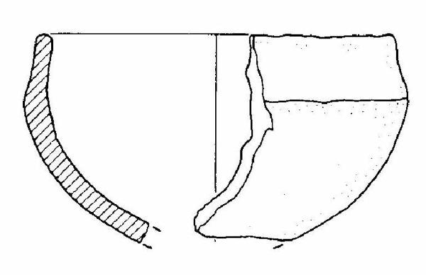 Frammento di capeduncola o scodella con orlo arrotondato, corpo carenato, con diametro all'orlo minore del diametro alla carena, vasca a calotta.
