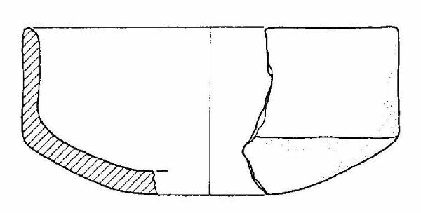 Frammento di capeduncola o scodella, con orlo assottigliato, corpo carenato a parete rettilinea, con diametro all'orlo uguale al diametro alla carena, vasca a calotta. Colore grigio