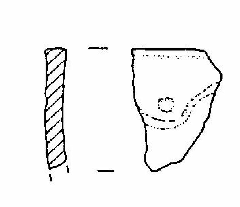 Frammento di vaso con orlo piatto e leggermente estroflesso, parete decorata da una coppella e da una solcatura a festone.