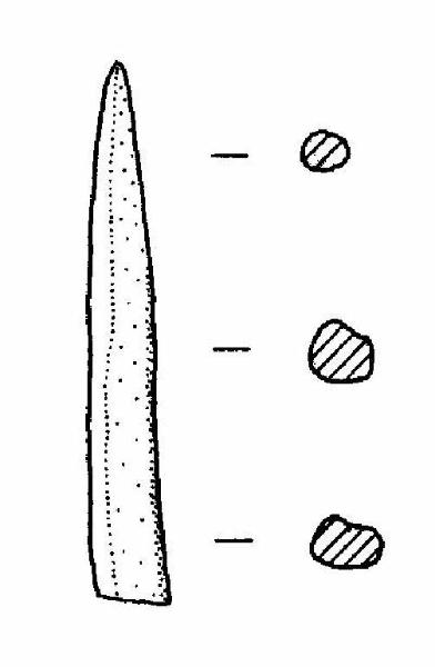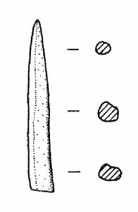 Punta in corno, con un'estremità appuntita; l'altra estremità presenta un taglio netto.