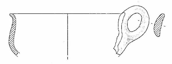 Tazza con orlo assottigliato ed estroflesso, corpo globoso, ansa a nastro verticale, leggermente insellata, soprelevata, ad anello, impostata sull'orlo e a metà del corpo. Colore grigio