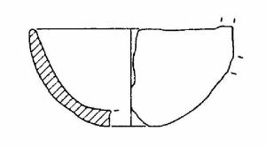 Capeduncola a profilo continuo, con orlo arrotondato, corpo semisferico, fondo convesso; sono presenti gli attacchi di un'ansa a nastro verticale, soprelevata.