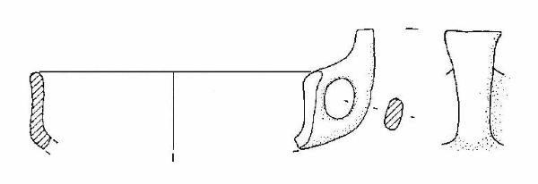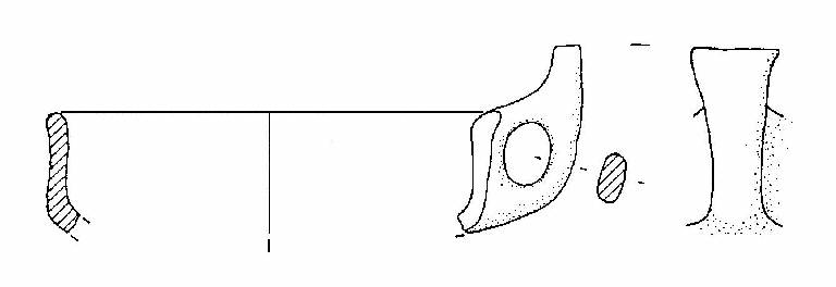 Capeduncola con orlo arrotondato, corpo carenato, a parete leggermente concava, con diametro all'orlo uguale al diametro alla carena. Vi è un'ansa a nastro verticale, soprelevata, ad ascia, con margine superiore rettilineo, impostata sull'orlo e sulla carena.
