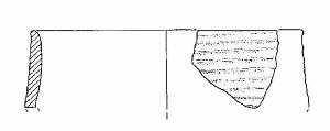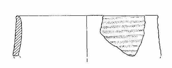 Capeduncola con orlo arrotondato e leggermente estroflesso, corpo carenato a parete rettilinea, con diametro all'orlo minore del diametro alla carena. Sotto l'orlo ci sono otto solcature parallele ed orizzontali. Colore grigio