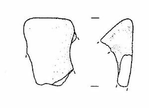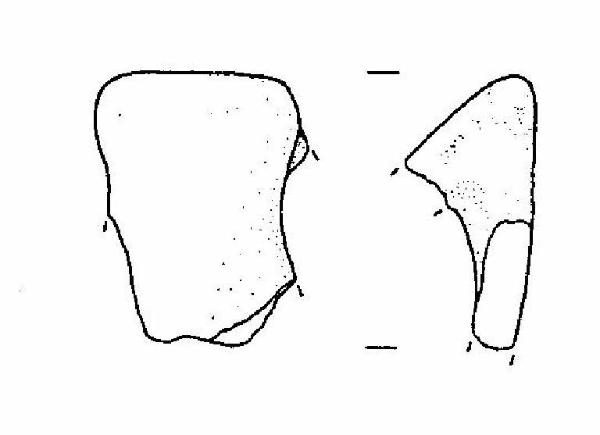 Frammento di ansa a nastro verticale, ad ascia, con margine superiore rettilineo.