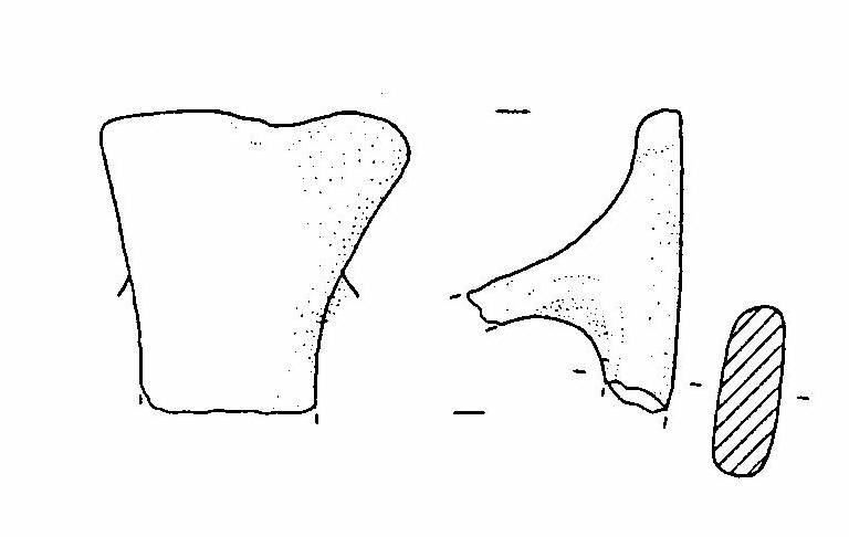 Frammento di ansa a nastro verticale, ad ascia, con margine superiore rettilineo.