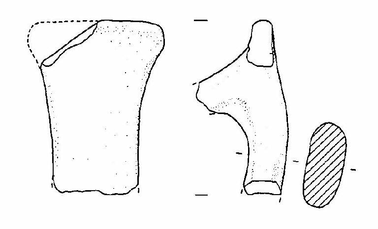 Frammento di ansa a nastro verticale, ad ascia, con margine superiore leggermente convesso.