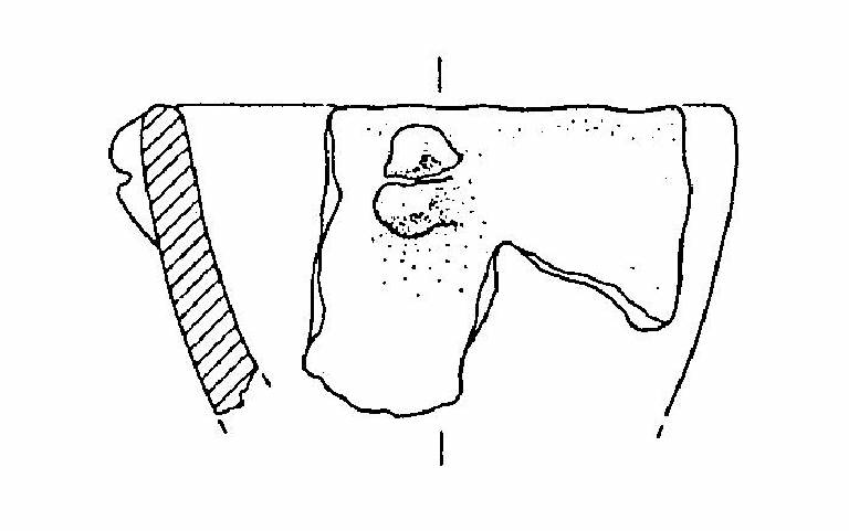 Scodella a profilo continuo, con orlo arrotondato, corpo troncoconico, una presa perforata orizzontalmente, impostata due mm sotto l'orlo.