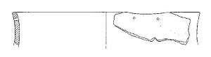 Scodellone a profilo continuo, con orlo arrotondato, conformato a festone, parete a profilo concavo, due fori passanti posti sei mm sotto l'orlo.