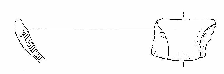 Scodellone a profilo continuo, con orlo arrotondato, corpo a calotta, ansa canaliculata, impostata sull'orlo e soprelevata.