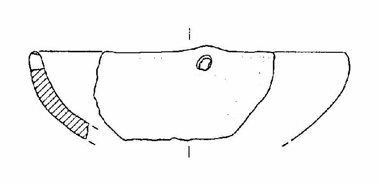 Ciotola a calotta, con orlo arrotondato, corpo a calotta; quattro mm sotto l'orlo c'è un foro passante.