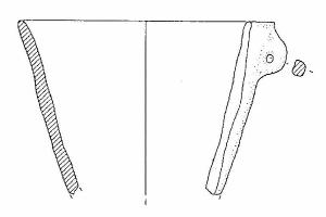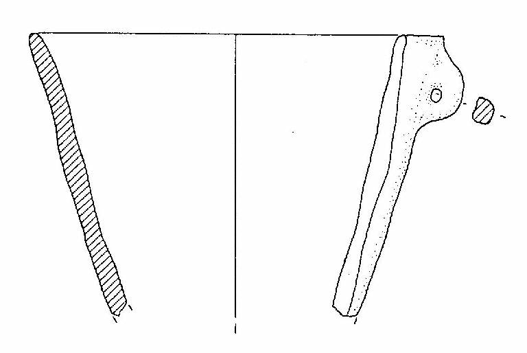 Vaso con orlo arrotondato, corpo troncoconico, ansa a bastoncello verticale, ad orecchio, impostata quattro mm sotto l'orlo.
