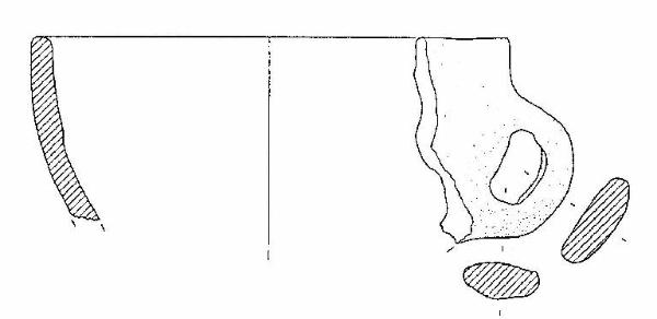 Vaso con orlo arrotondato, corpo troncoconico, a parete convessa, ansa a nastro verticale, ad orecchio, impostata venti mm sotto l'orlo.