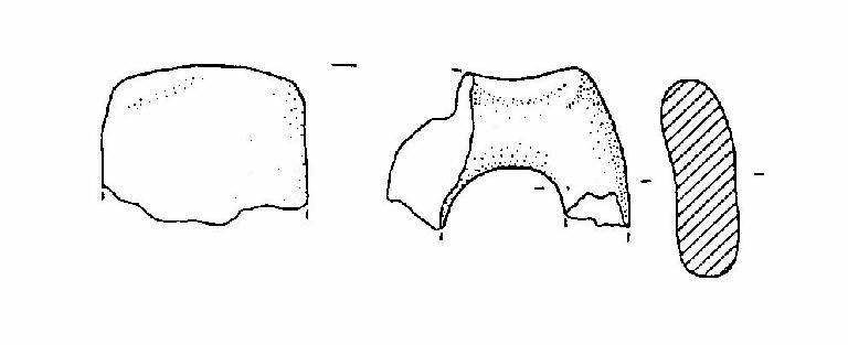 Frammento di ansa a nastro verticale, non soprelevata, a gomito, con appendice asciforme.