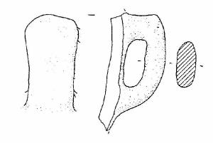 Frammento di parete con ansa a nastro verticale, non soprelevata, a gomito, con margine superiore convesso.
