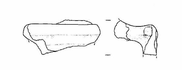 Frammento di ansa a nastro verticale, non soprelevata, a "T". La faccia esterna dell'ansa presenta una solcatura orizzontale.