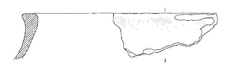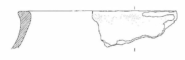 Vaso con orlo ingrossato, corpo presumibilmente biconico.