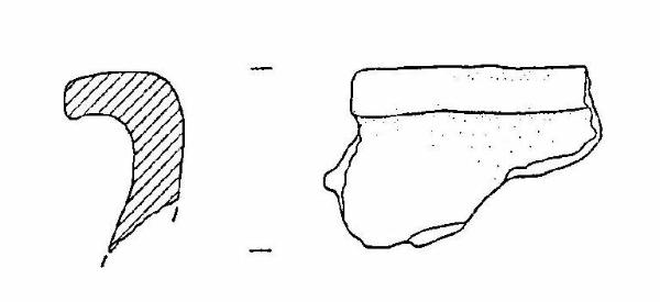 Vaso con orlo a tesa, corpo presumibilmente biconico.