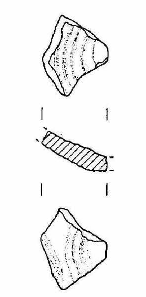 Frammento di fondo, decorato esternamente ed internamente da solcature.