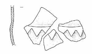 Frammenti di parete, decorata da motivi a dente di lupo, a rilievo.
