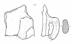 Frammento di parete, con ansa a nastro verticale, non soprelevata, a gomito, con piccola appendice a bottone.