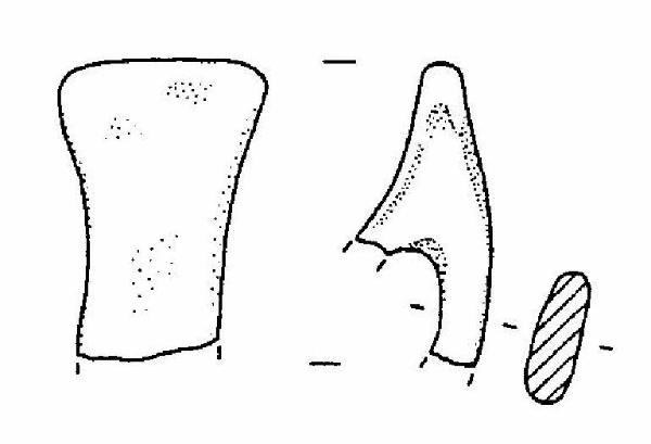 Frammento di ansa a nastro verticale, ad ascia, con margine superiore leggermente convesso.