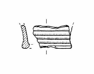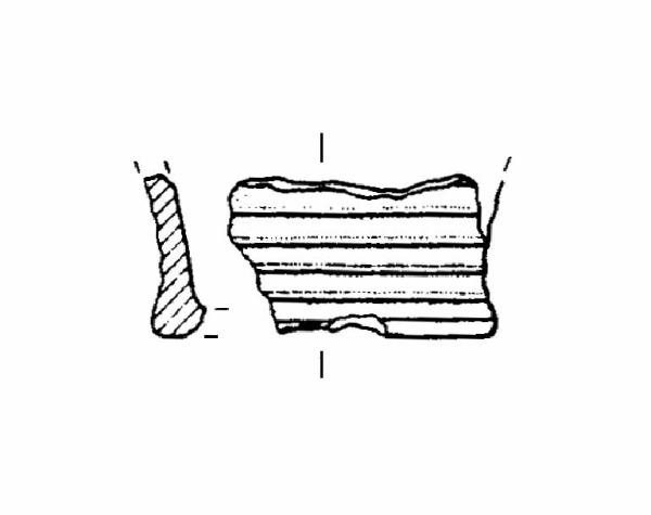 TIPO ISOLONE. Fondo a tacco. Decorazione a solcature parallele e orizzontali sulla parete. Colore: grigio scuro.