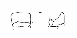 A nastro verticale. Non sopraelevata. Margine superiore rettilineo e apici poco sviluppati. Colore: grigio scuro.