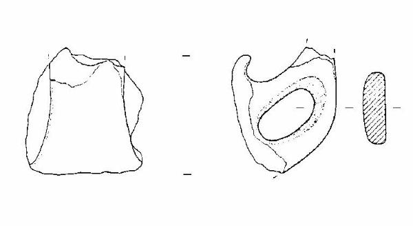A nastro verticale. Sopraelevata. Appendice lacunosa, impostata 1,5 cm sotto l'orlo. Colore: grigio.