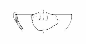 A profilo continuo. Orlo arrotondato. Corpo a calotta. Decorazioni plastiche parallele e verticali al di sopra dell'orlo. Colore: grigio.