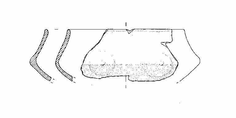 Orlo arrotondato. Parete rettilinea. Decorazione con due bugne mammelliformi sulla massima espansione del vaso. Colore: grigio scuro.