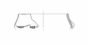 Orlo arrotondato e lievemente esoverso. Parete rettilinea. Decorazione con bugna plastica mammalliforme sulla massima espansione del vaso. Colore: grigio scuro.